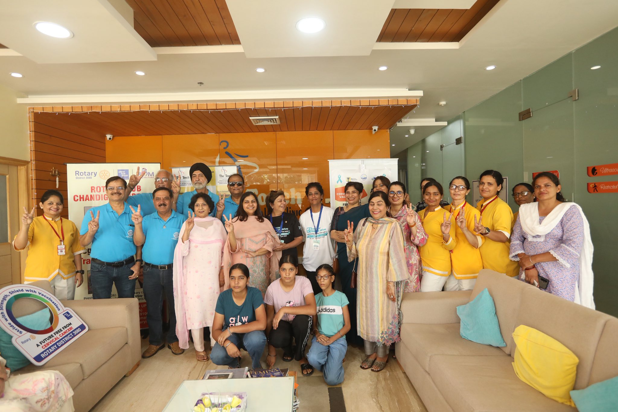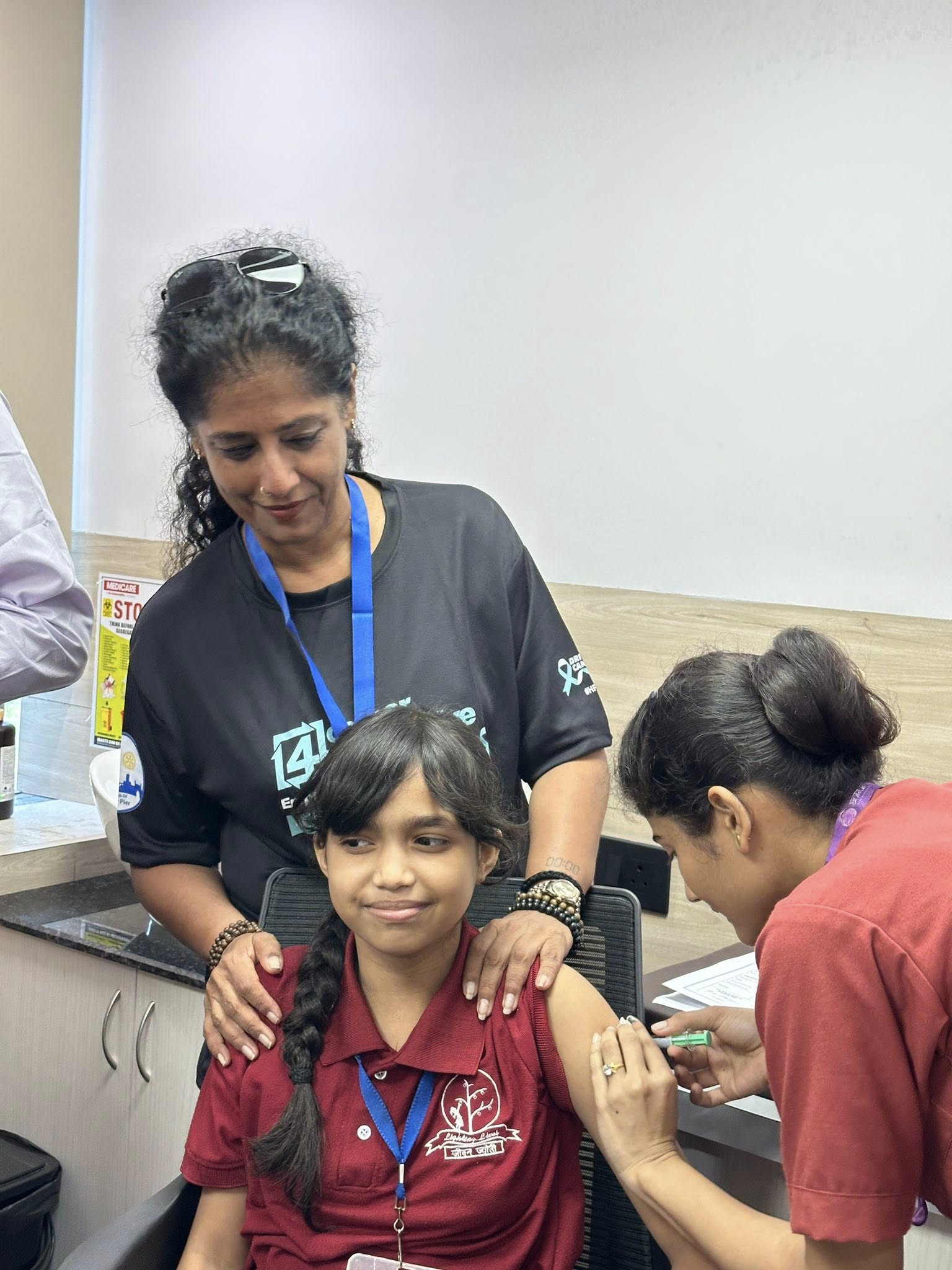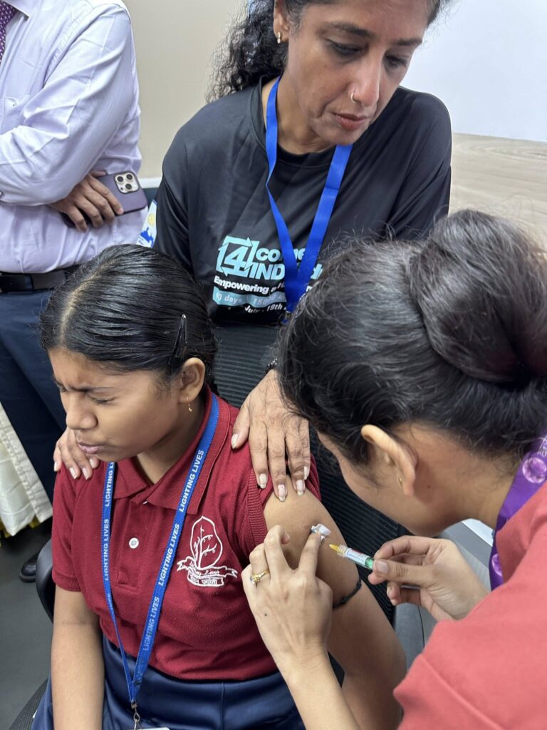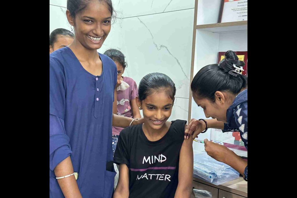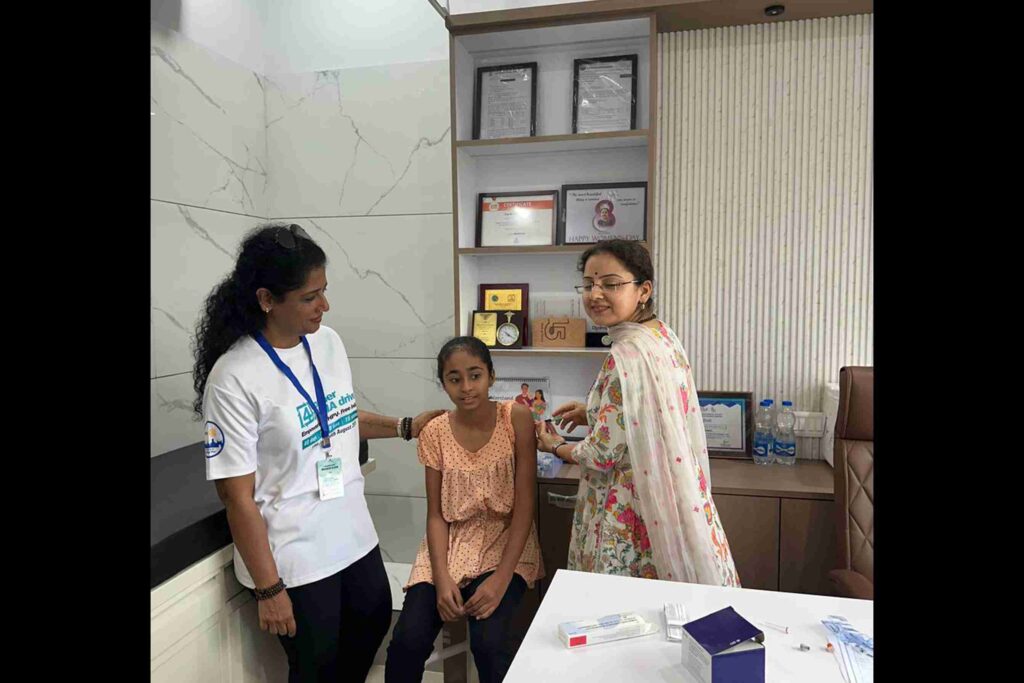 • First, a vaccination drive at Touch Clinic, where 50 girls received their shots.