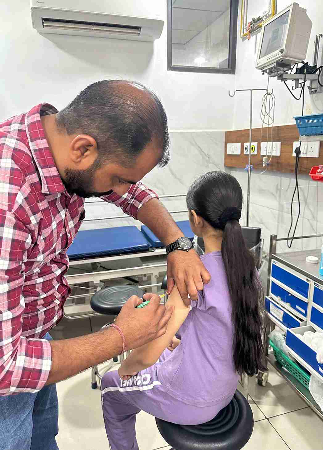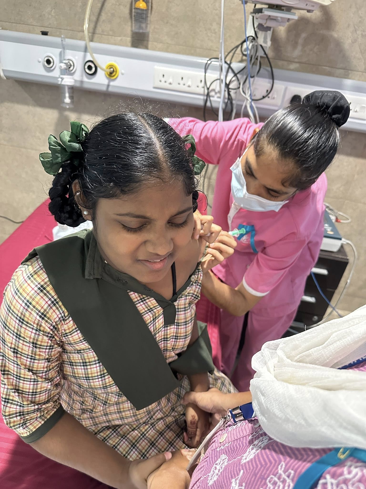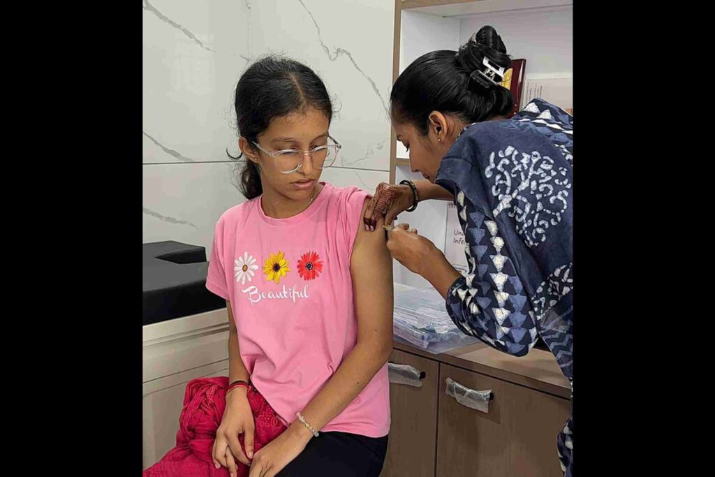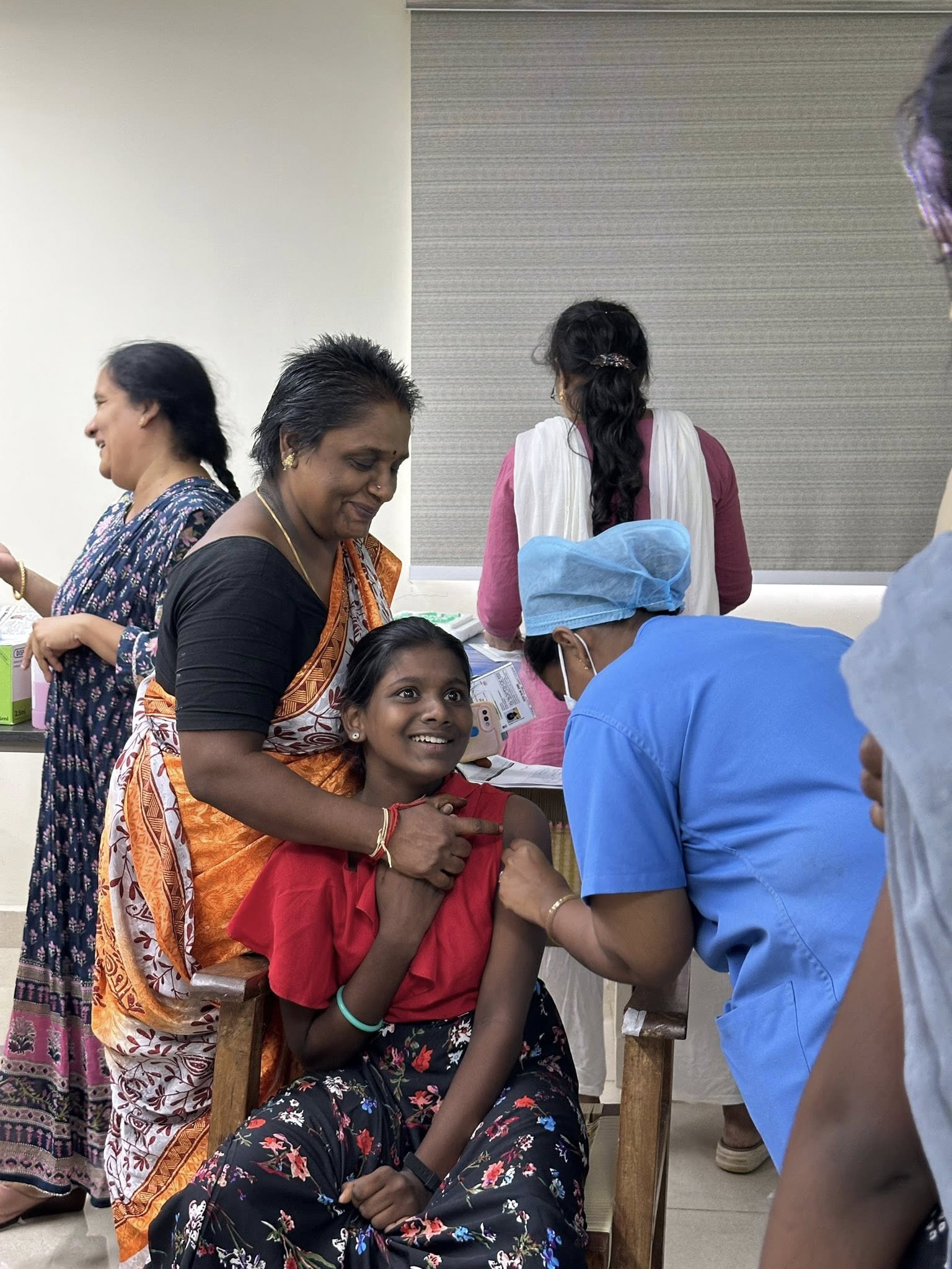 • First, a vaccination drive at Touch Clinic, where 50 girls received their shots.