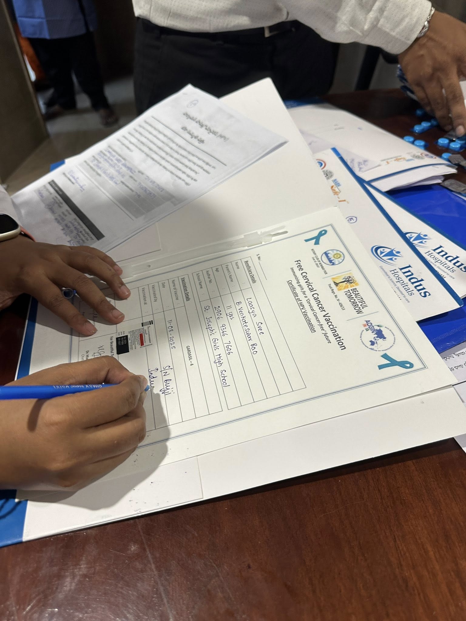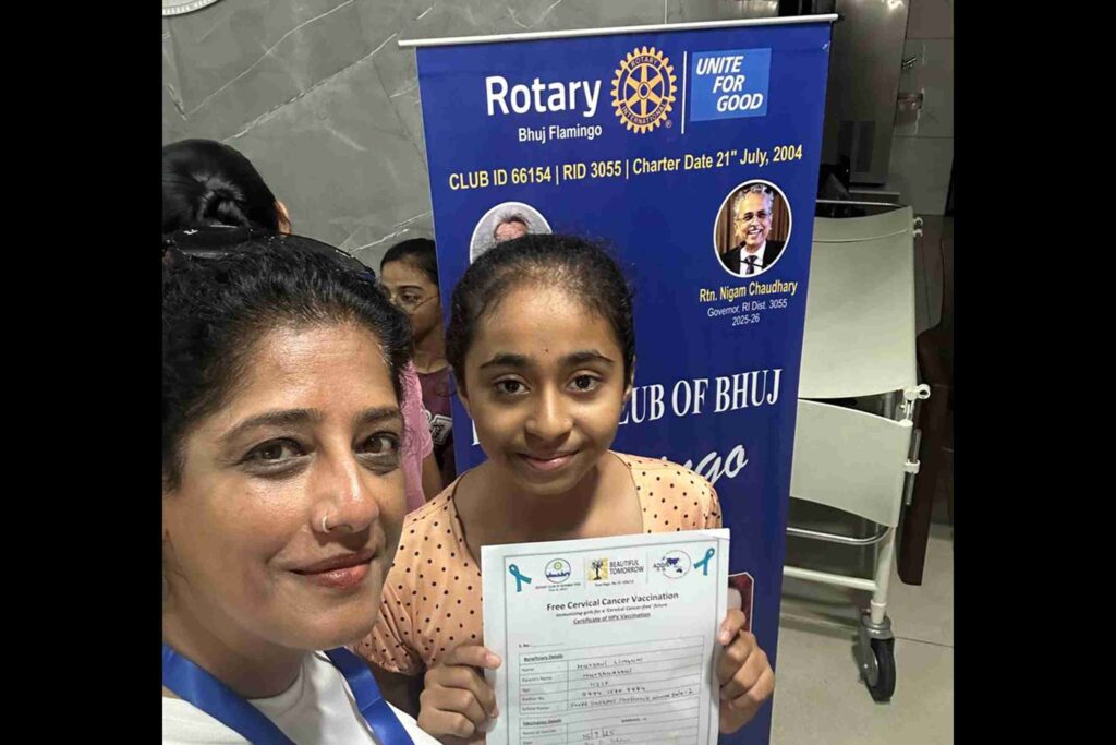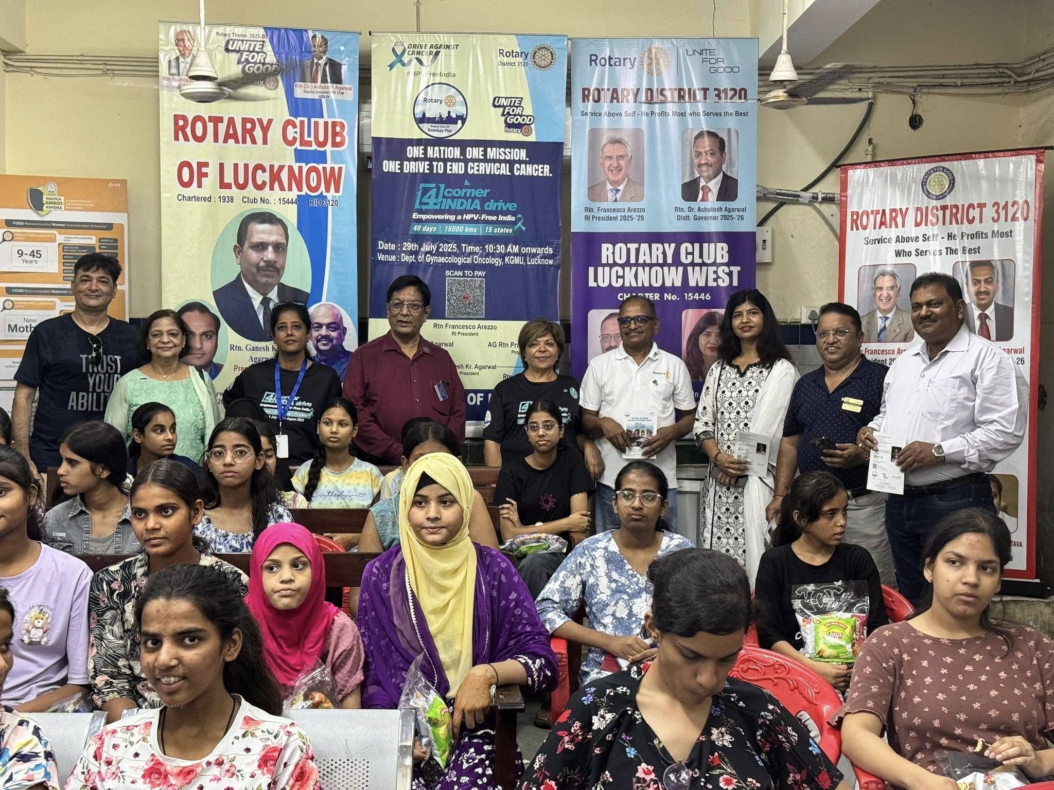 By 4:30 pm, we were at the vaccination drive organized by the Rotary Club of Jodhpur, one of India’s oldest. They had everything perfectly set up: 75 girls waiting, a mini rally of 20 cars, police escort, banners, everything. It was so heartening to see another 75 young girls protected from a cancer that doesn’t need to exist anymore.