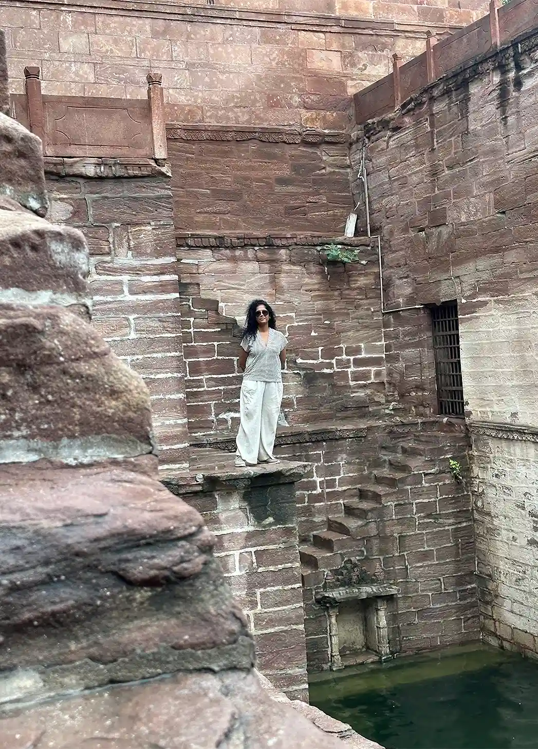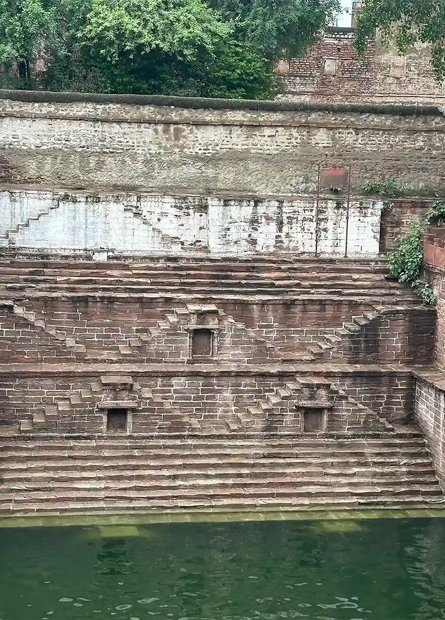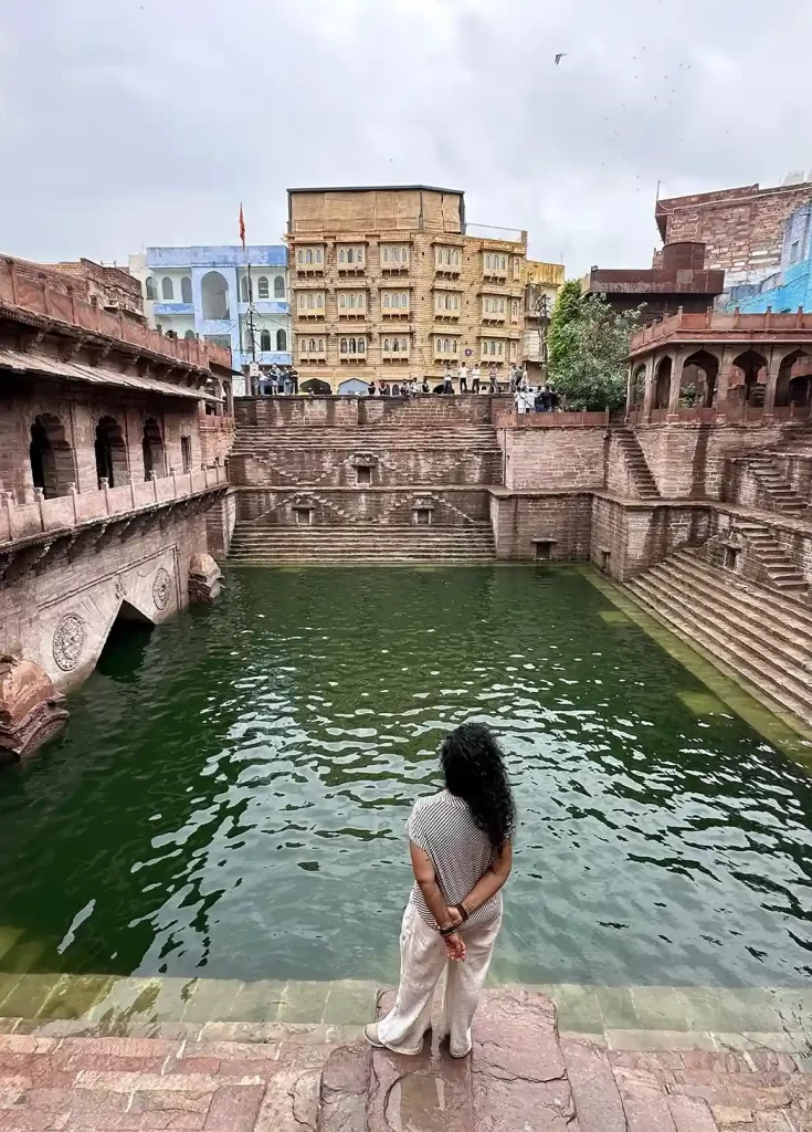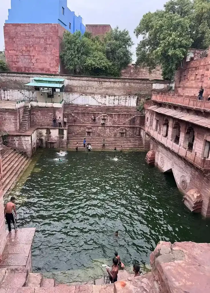 Toorji Ka Jhalra, a stunning 17th-century stepwell. The place was alive with at least 6 dozen boys fearlessly diving into the well below, from impossible heights. I chatted with a few, and they even did some jumps just for us. Honestly, I was so tempted to leap in too .. maybe not from the top, but at least from the lower ledges. But not a single woman in sight, and I knew I’d cause a spectacle if I tried.