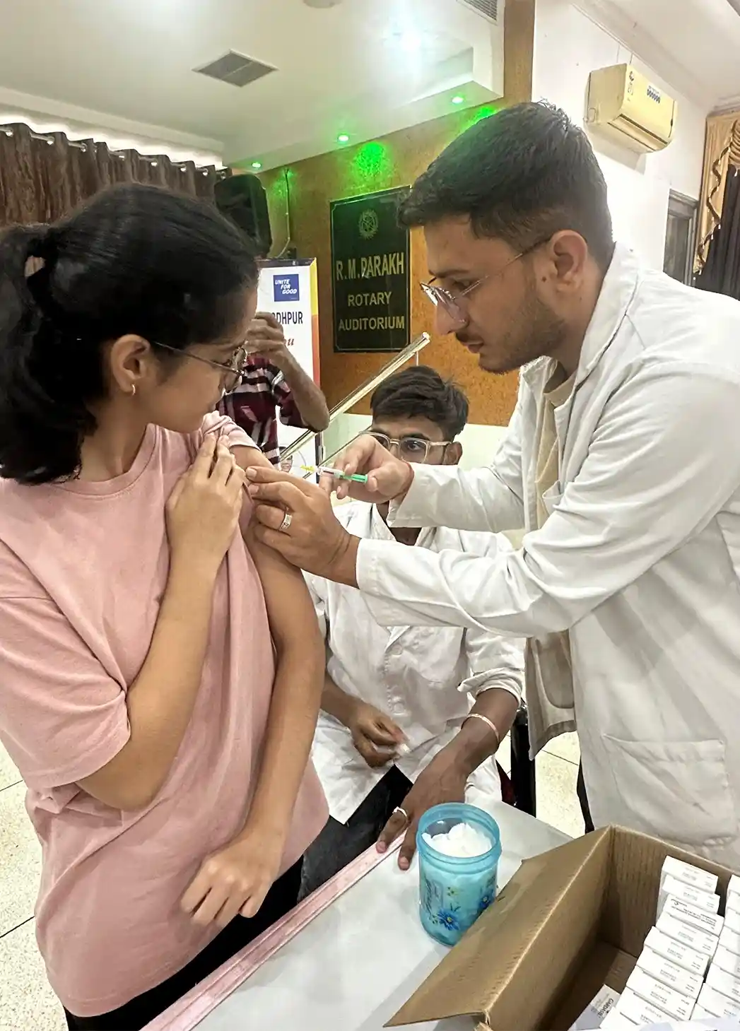 The hospital itself was brand new—not yet fully operational—but opened specially for this vaccination drive. What followed was a very typical Rotary affair: warm people, and an absolute frenzy of photographs. So many that I tried slipping away at one point, only to be pulled back repeatedly.