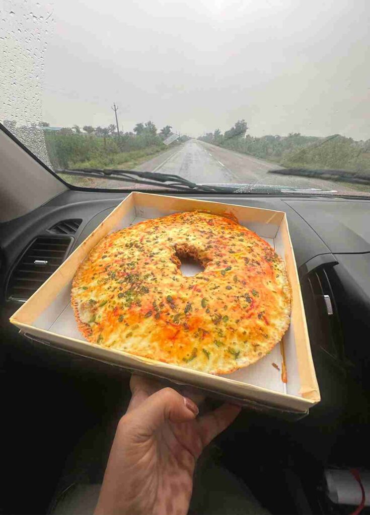 The mood lifted thanks to our stash of sweets, friends had loaded us up with a mountain of mithai, including an insanely good Ghevar. Our car now officially doubles as a mobile sweet shop. Nothing beats the love people show through food. Love through food is unmatched .. and my waistline agrees.
