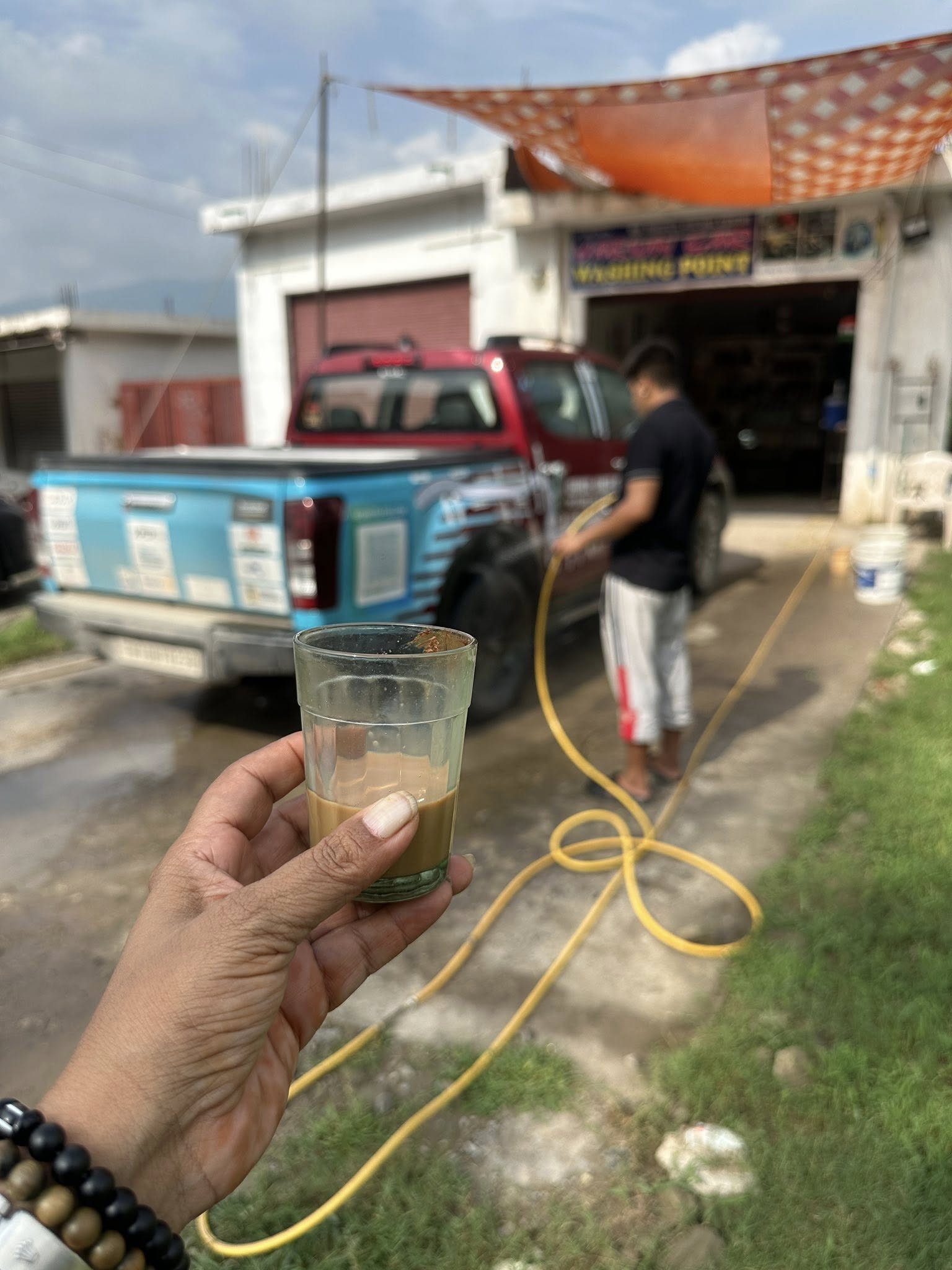 We also gave Laal Pari some much-needed TLC. She’s been trudging through slush and rain for days, caked in stubborn layers of mud. While we sipped on hot chai, she got a thorough wash and a little love.