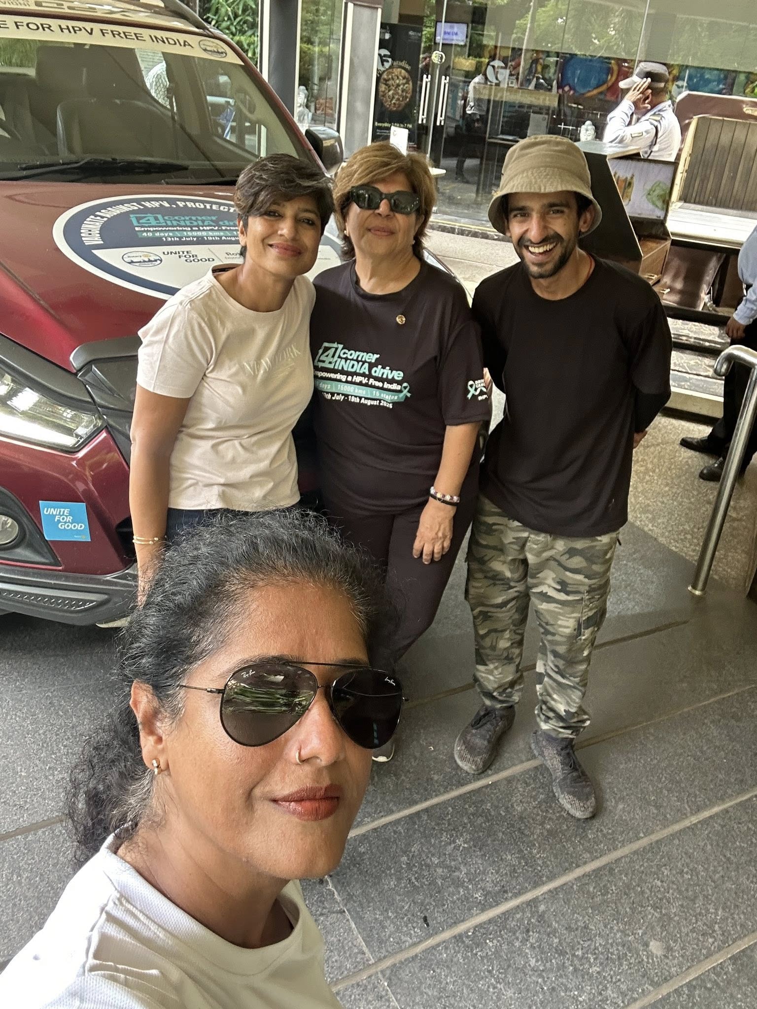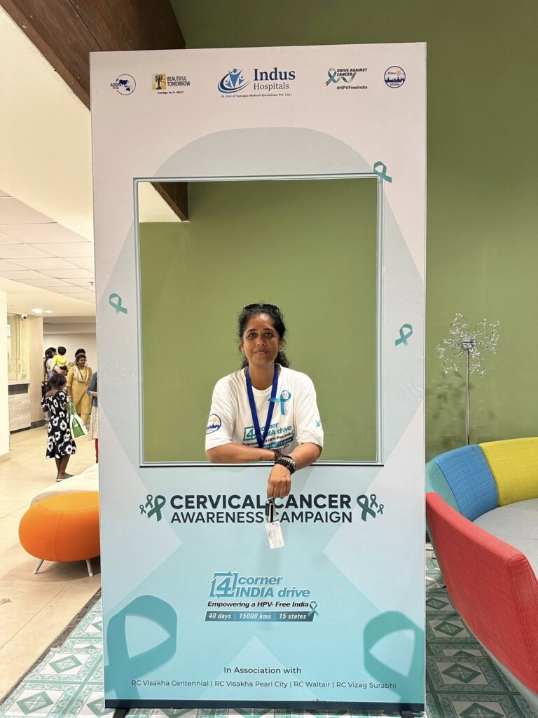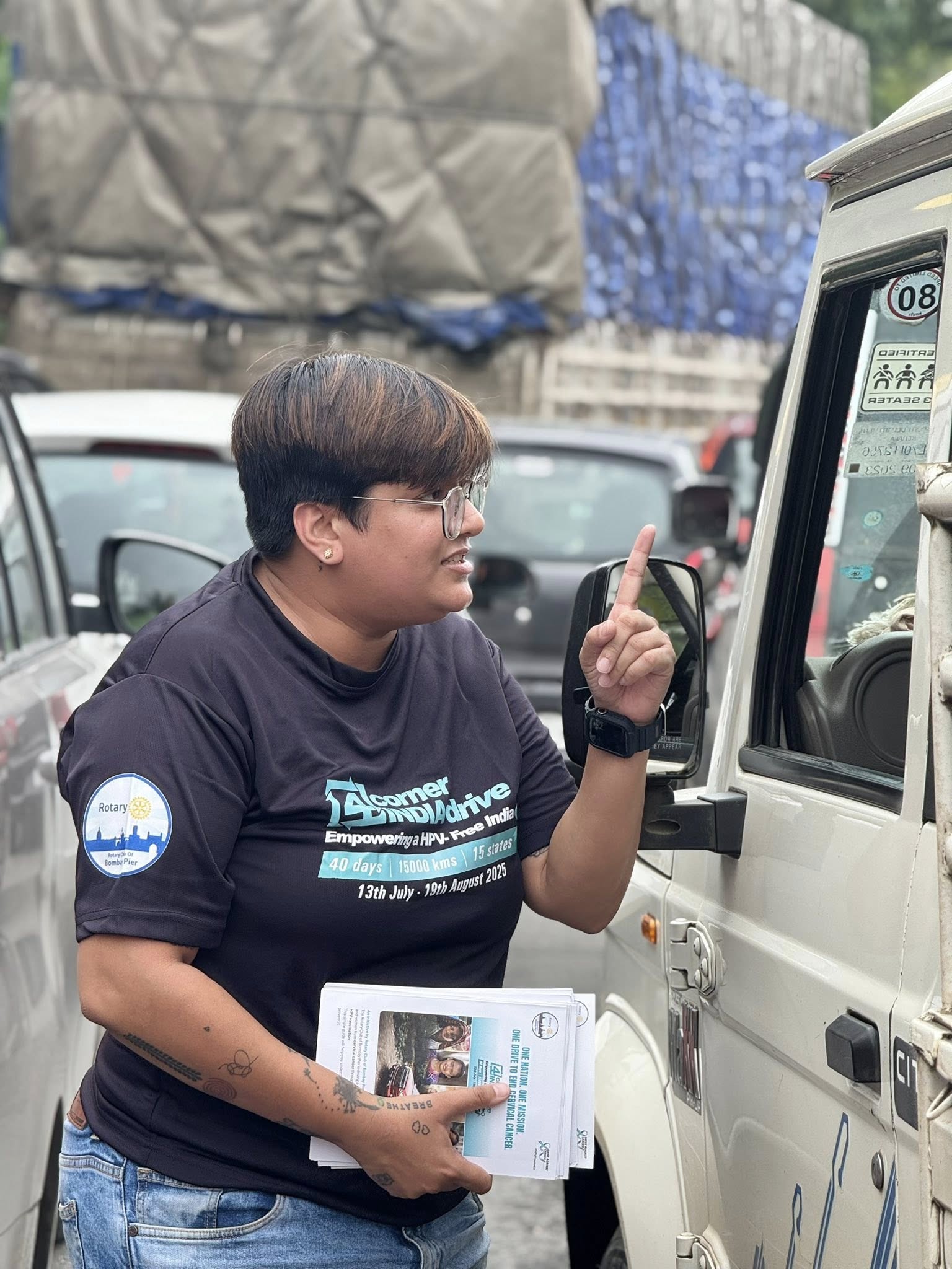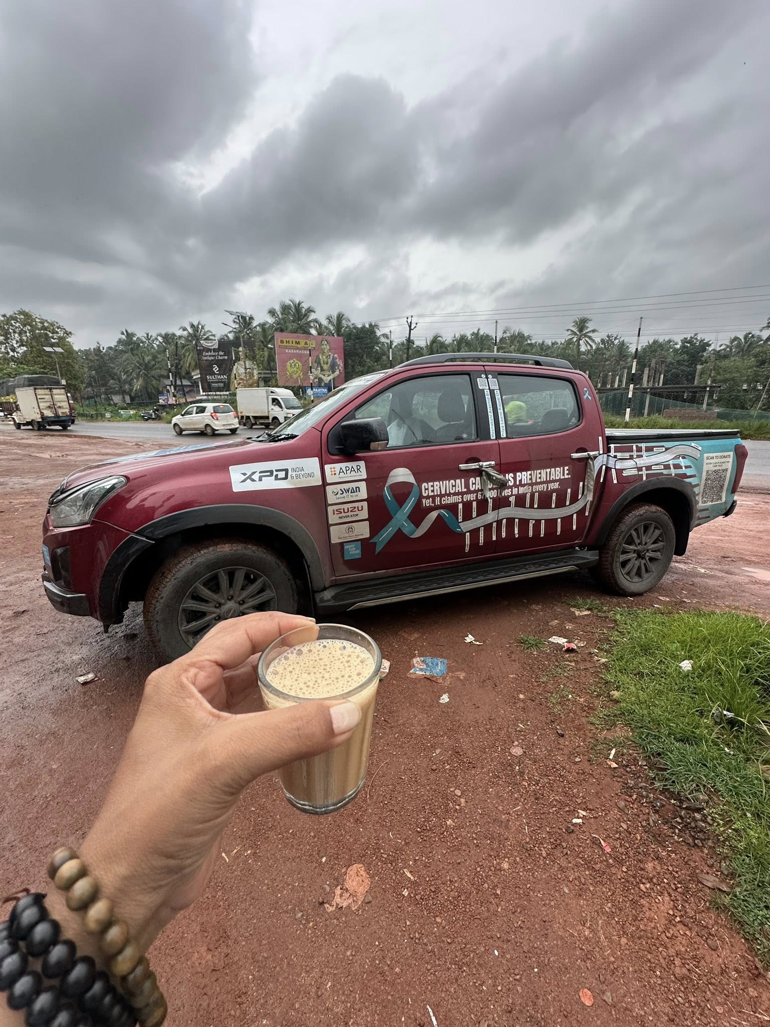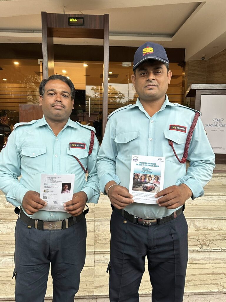 At every traffic jam—when we were stuck for 20–25 minutes—Romani Agarwal (now thoroughly “Mallufied” as Ramani) and Suraj jumped into action. I’d send my imps into work mode—brochures in hand, going car to car, talking to people about cervical cancer, HPV, and handing out information.