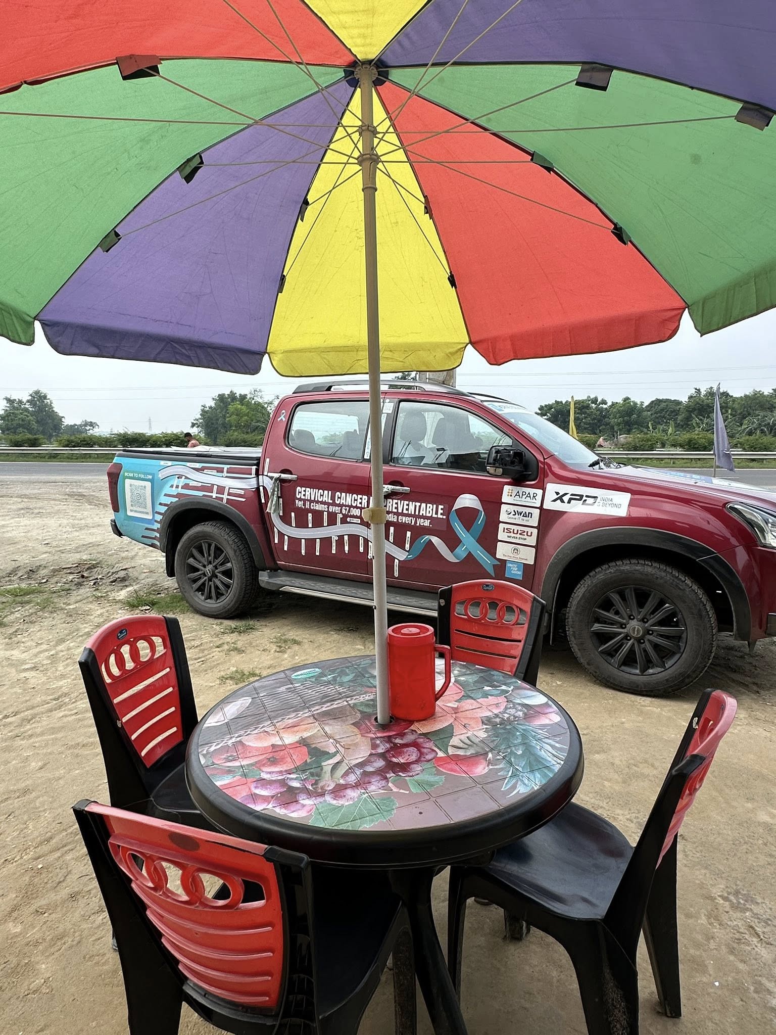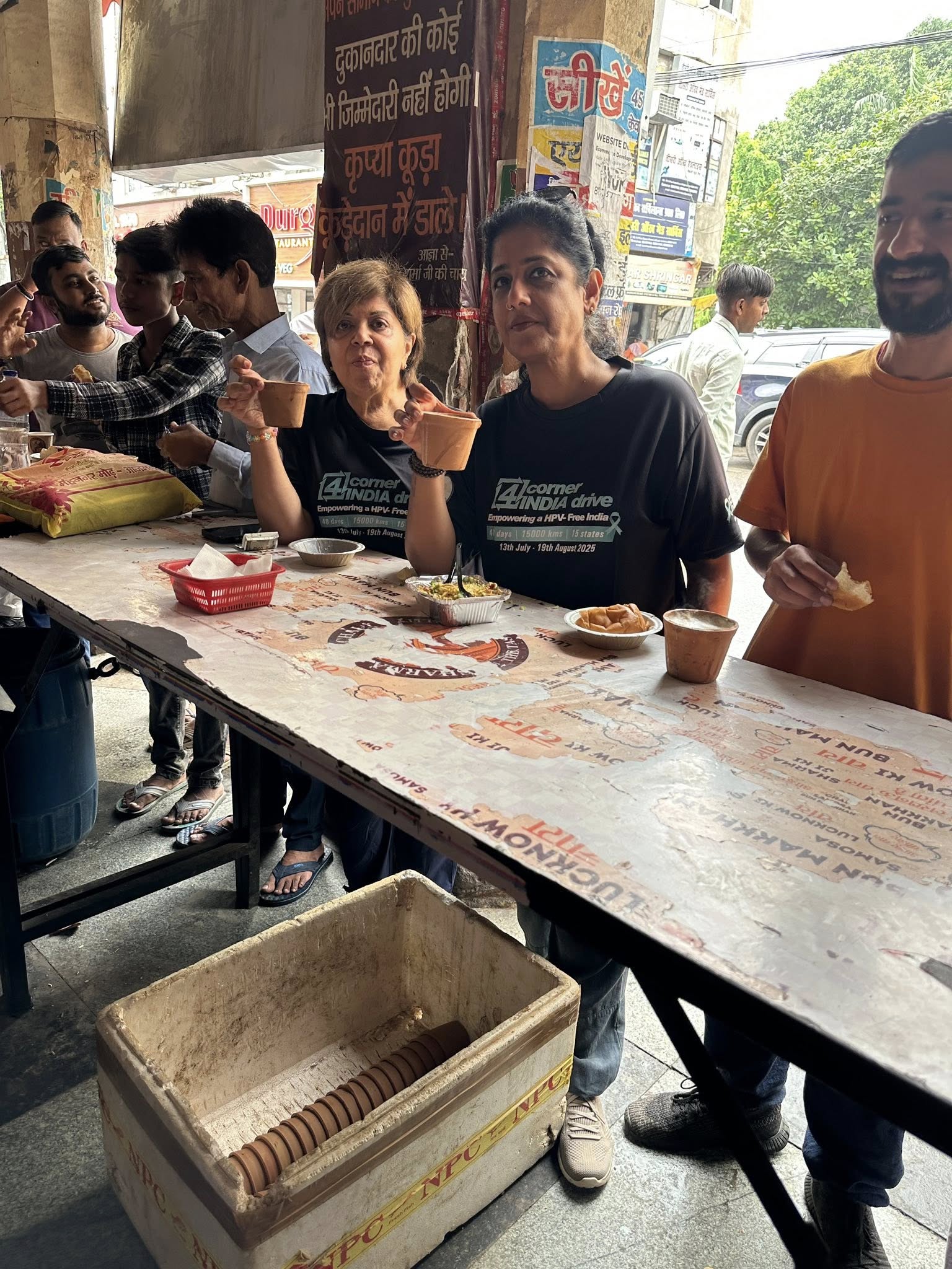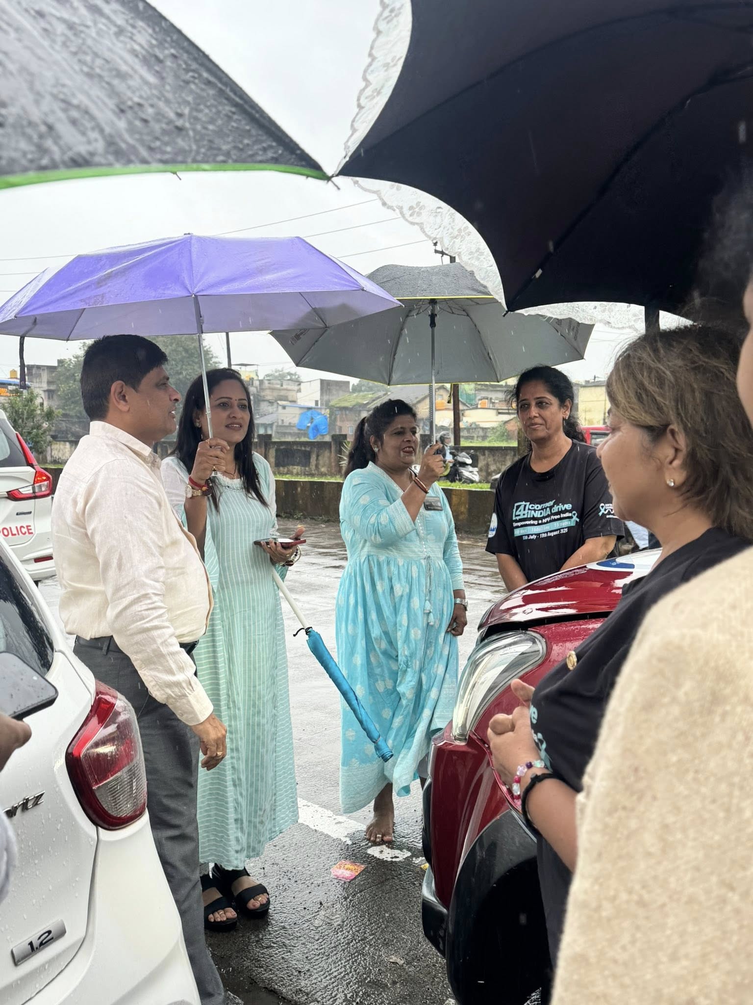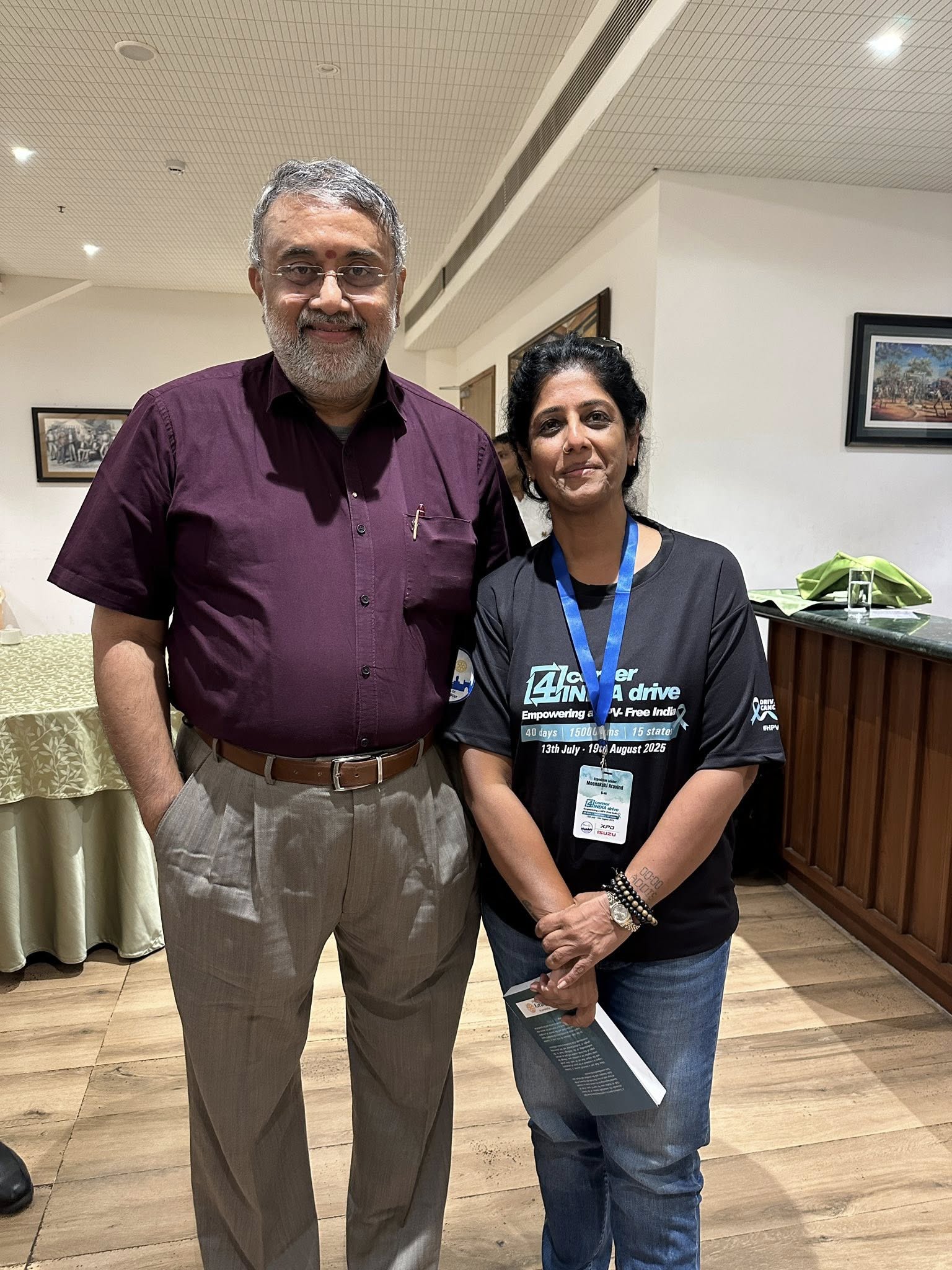 At every traffic jam—when we were stuck for 20–25 minutes—Romani Agarwal (now thoroughly “Mallufied” as Ramani) and Suraj jumped into action. I’d send my imps into work mode—brochures in hand, going car to car, talking to people about cervical cancer, HPV, and handing out information.