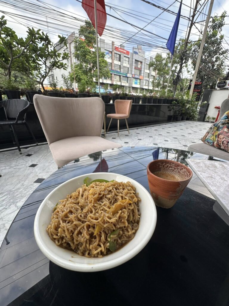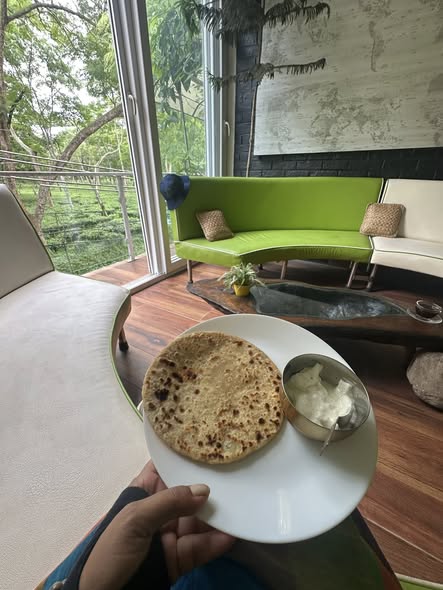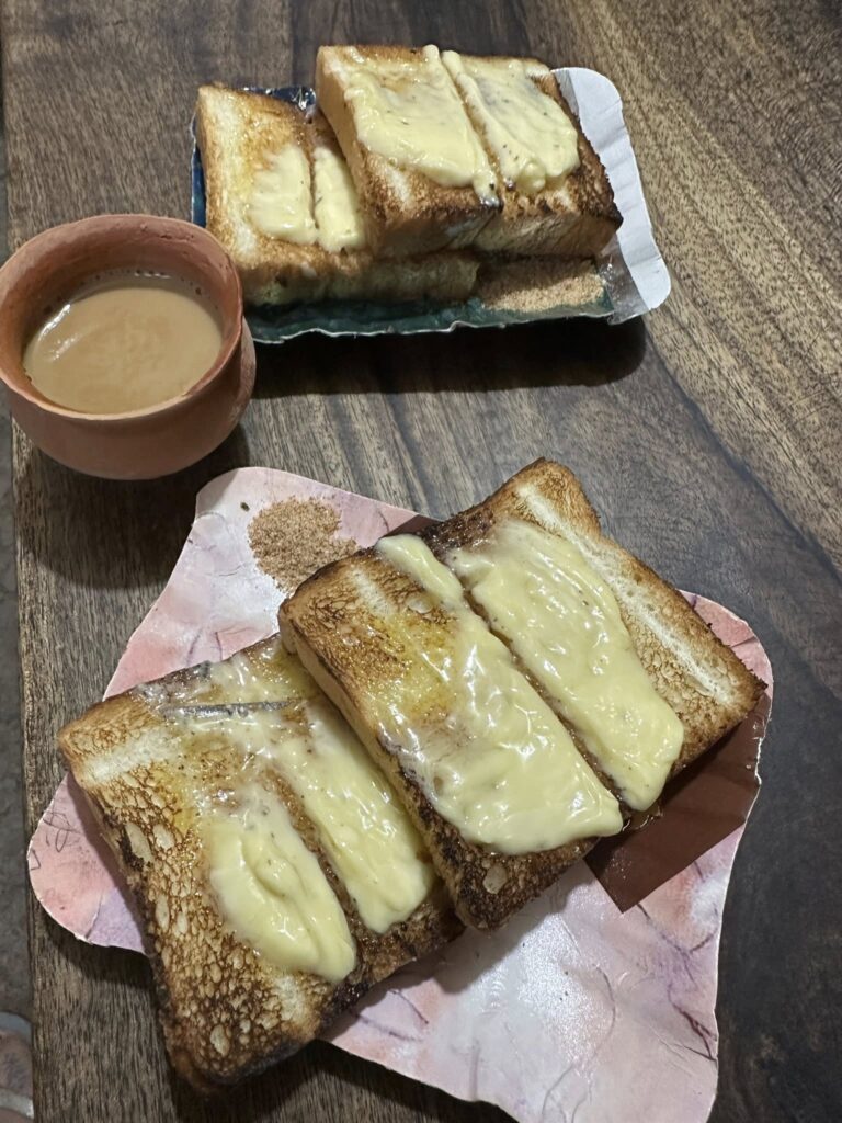 We left a little leisurely at 8 AM, stopping for breakfast at a very nondescript-looking hotel. I was sceptical the moment we pulled into the parking lot, but the food turned out surprisingly decent. A couple of chai breaks followed—because with Suraj around, food and chai stops are non-negotiable. He gets hangry, so we’ve learned to keep him fuelled.