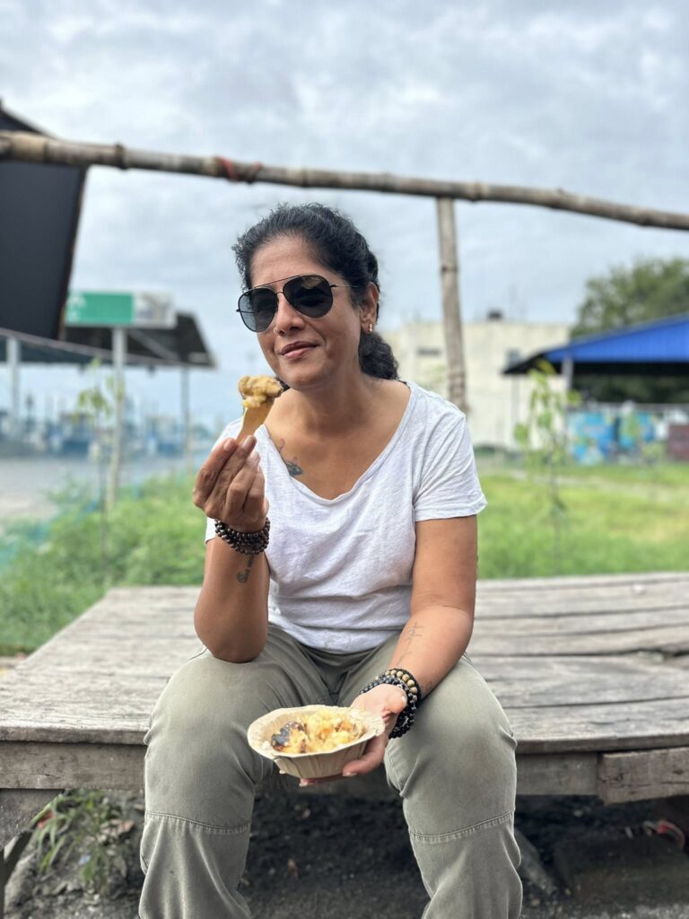 Post-camp, we got treated to a roadside tapri..fafda, jalebi, green chillies, some mysterious papaya pickle…all served on newspaper. Looked sketchy, tasted divine. Chai boiled to oblivion, just how it should be.