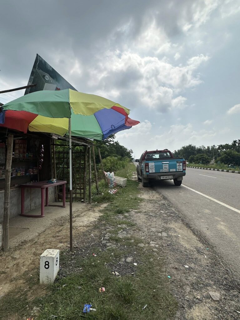 It rained all night, with constant alerts of landslides and flash floods. We packed up early and set off by 6:30 AM in gloomy, blinding rain. Visibility was terrible, but the freshly paved roads since 2021 made the drive manageable. Hardly any traffic—most people had stayed off the roads.