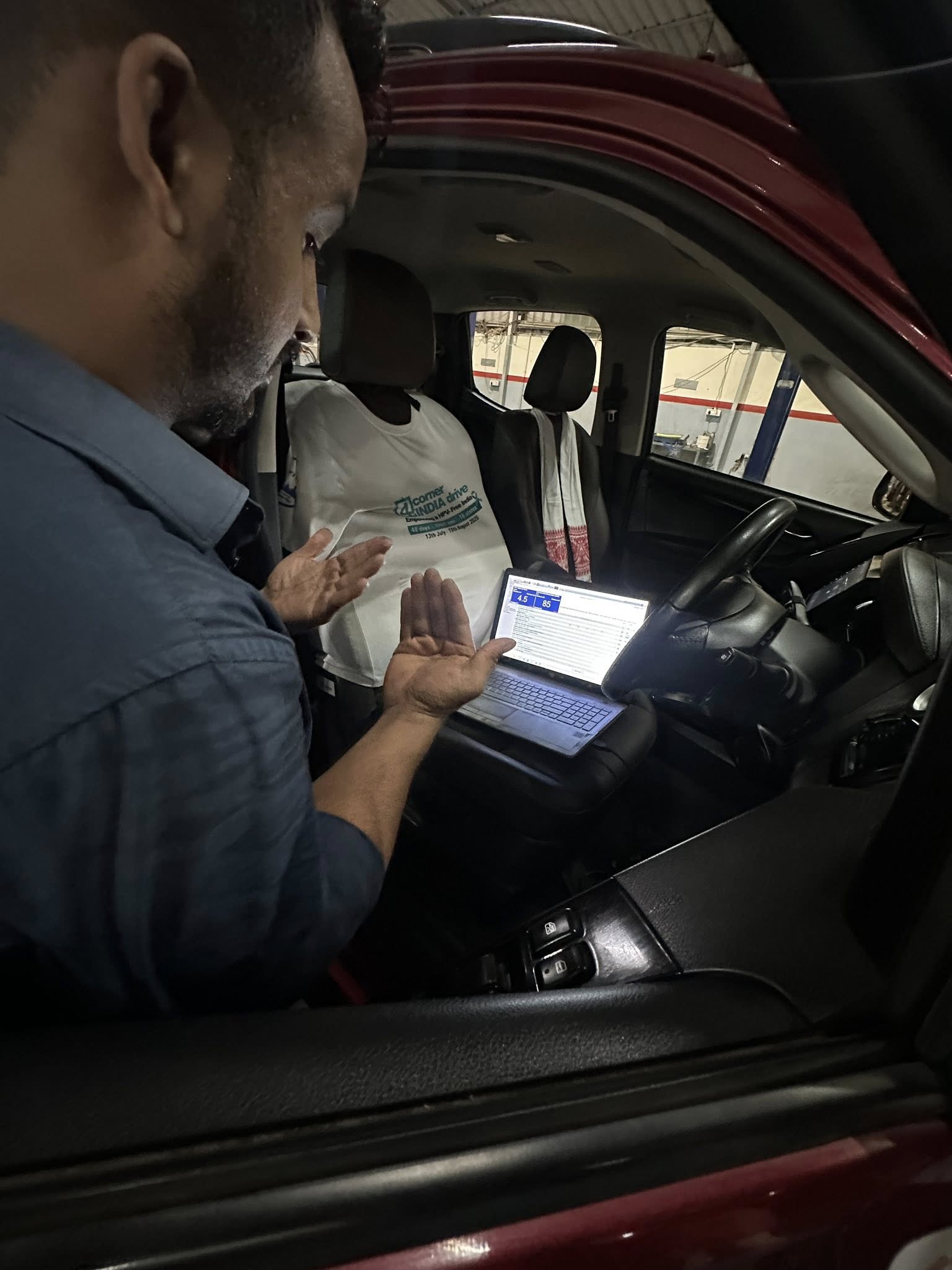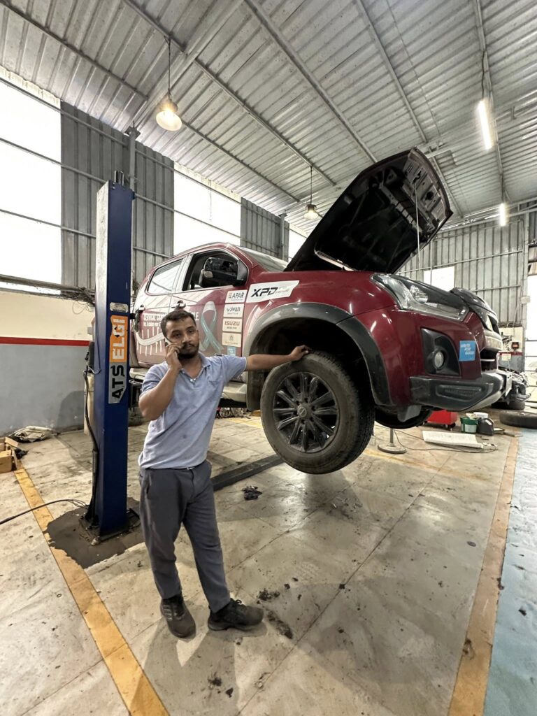 We reached Chandigarh by early afternoon and headed straight to the Isuzu service centre for a quick check on Laal Pari. We’ve already clocked 5,000 km of the 15,000 km we’ve set out to do, so this pit stop felt like important preparation for the 10,000 km still ahead. In under an hour, filters were cleaned, brake pads inspected, coolant and washer fluid topped up, and oil checked—quick, thorough, and reassuring.