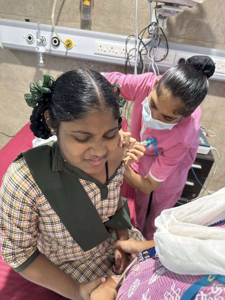 Straight to Sangeetha for dosa (again!) before heading to the Adyar Institute, where 50 girls received their HPV vaccinations. My dear friend Naveen dropped by with a basket of apples for the girls—a simple, thoughtful gesture that meant a lot.