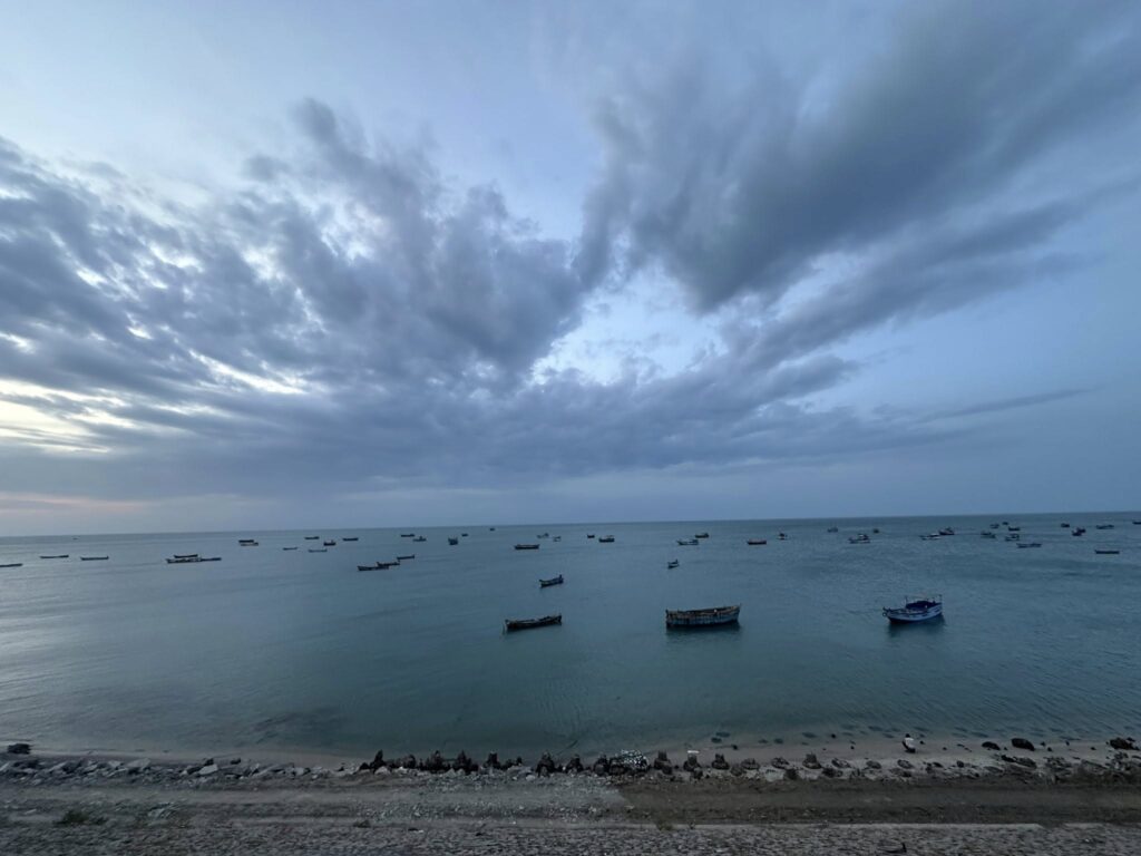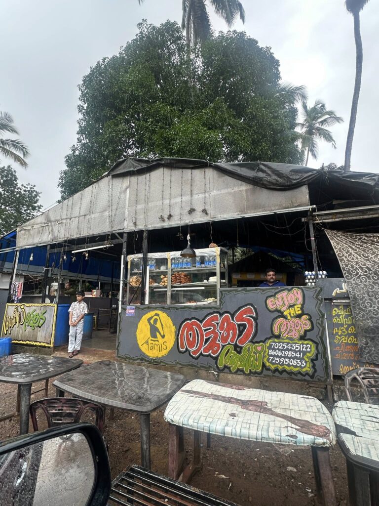 I had been really looking forward to driving on Muzhappilangad Drive-in Beach, Asia’s longest. I’ve done it before, and it’s always a thrill. But today, the sea was raging. The waves were monstrous, and the entire beach was cordoned off under an orange alert. It was shocking to see such a calm, gentle place transformed into something almost frightening. That detour cost us an extra hour and left me disappointed—but safety came first.