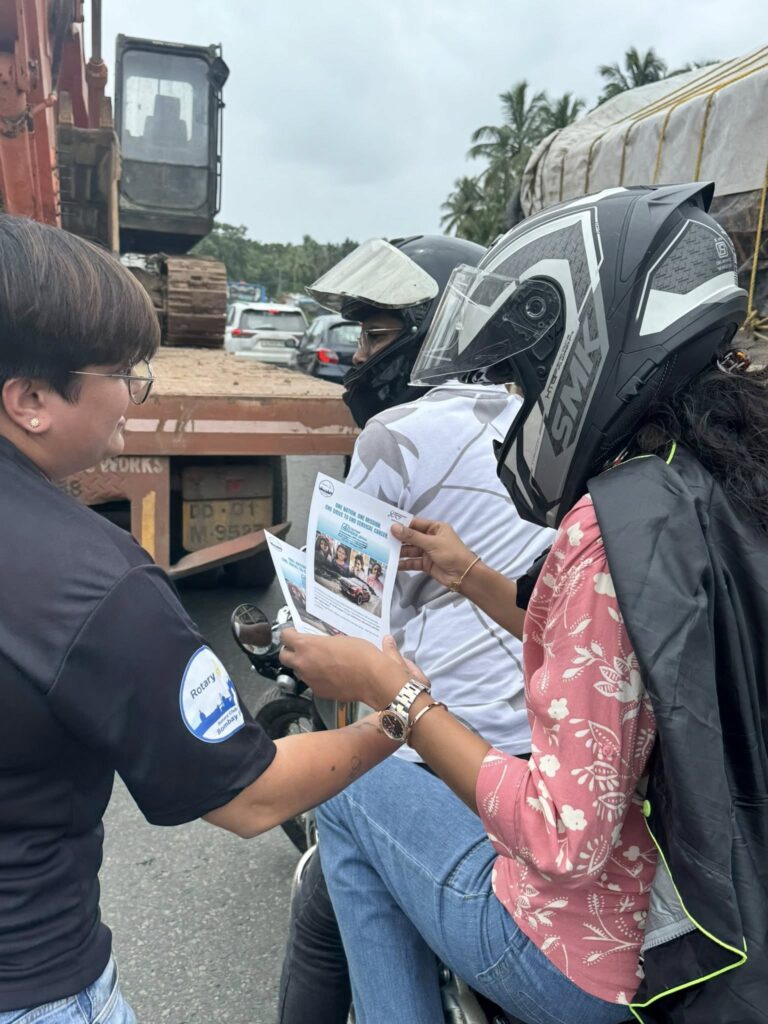 • Next, a 20-car rally through the city, organised in coordination with the traffic police. Over 100 people attended—multiple Rotary clubs, road safety advocates, and the general public—making it a lively and impactful event.